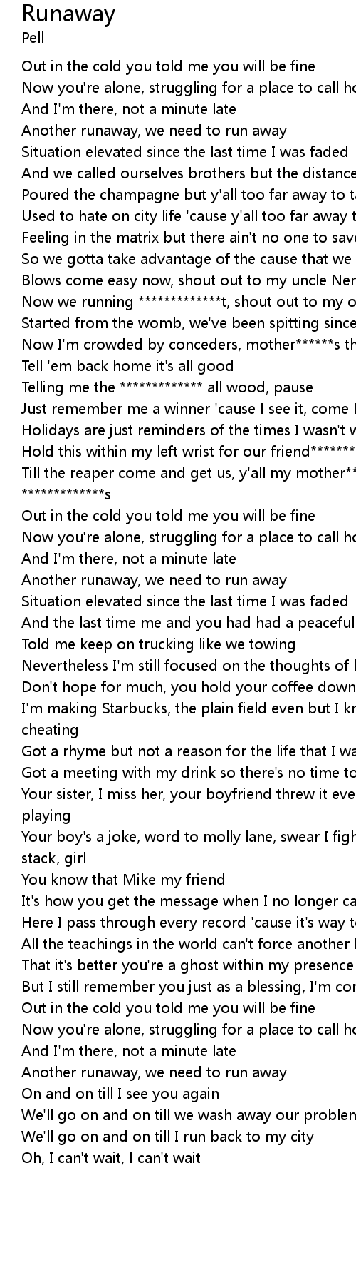We'll go on and on till I run back to my city |