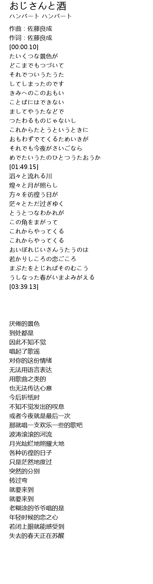 | 歌曲 | おじさんと酒 |