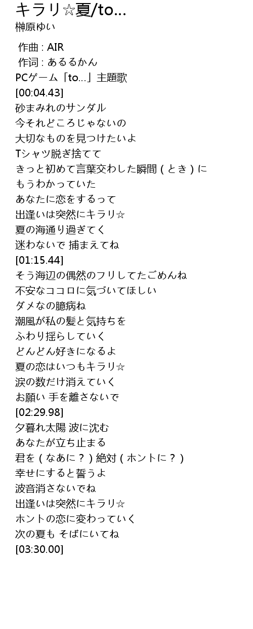 | [00:02.58] | PCゲーム「to…」主題歌 |