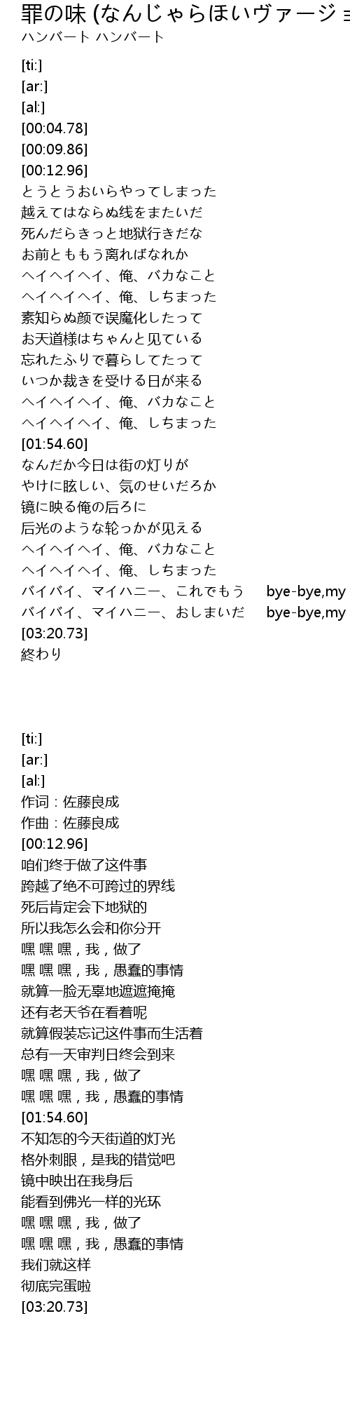 | 歌曲 | 罪の味 (なんじゃらほいヴァージョン) |
