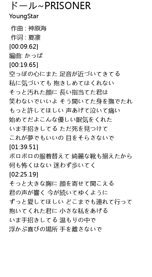 | [00:58.21] | もっと許してほしい 声あげて泣いて痛い |