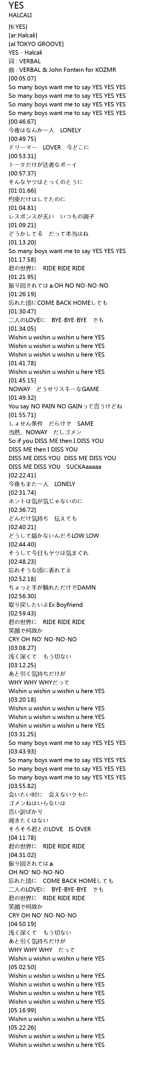 | [00:00.44] | YES Halcali |