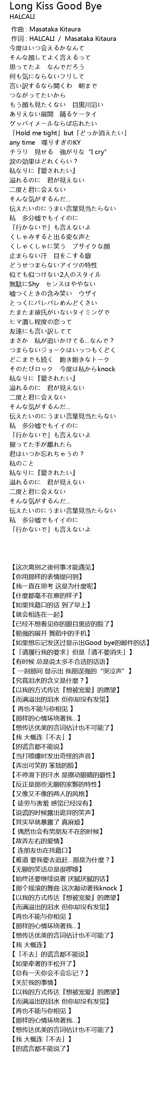 | [00:39.54] | 「Hold me tight」but「どっか消えたい」 |