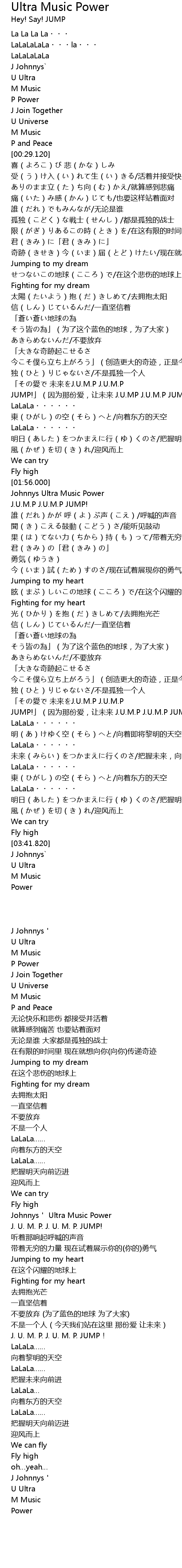 | [02:15.67] | Johnnys' Ultra Music Power |