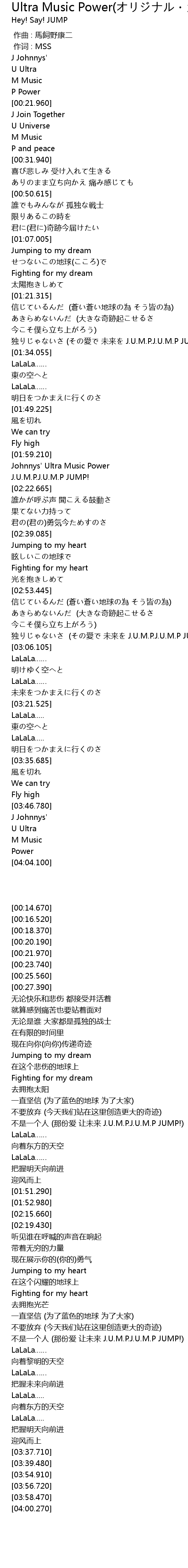 | [02:15.660] | Johnnys' Ultra Music Power |
