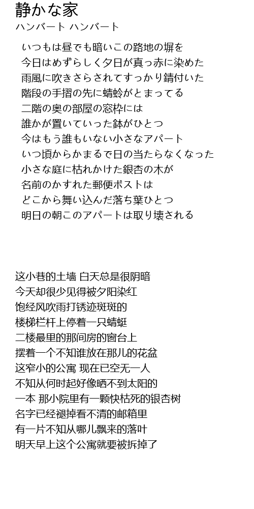 | 歌曲 | 静かな家 |