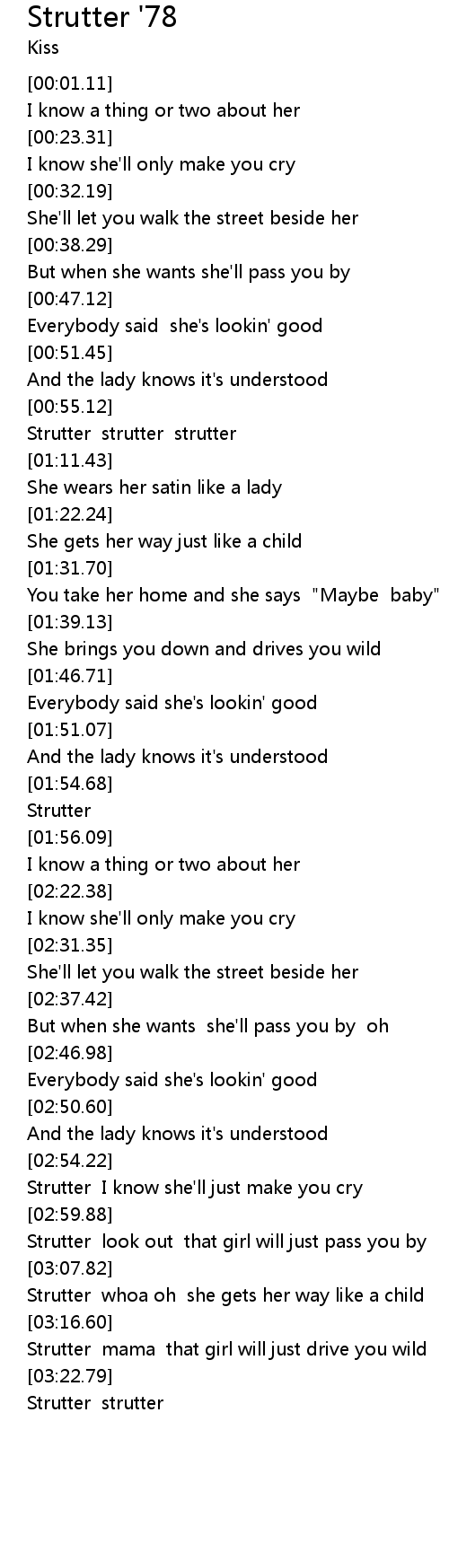| [03:02.36] | Strutter look out that girl will just pass you by |