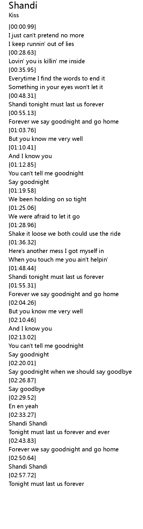 | [02:20.66] | Say goodnight when we should say goodbye |