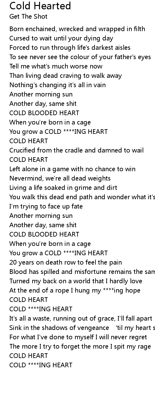 | [00:27.41] | You grow a COLD ****ING HEART |