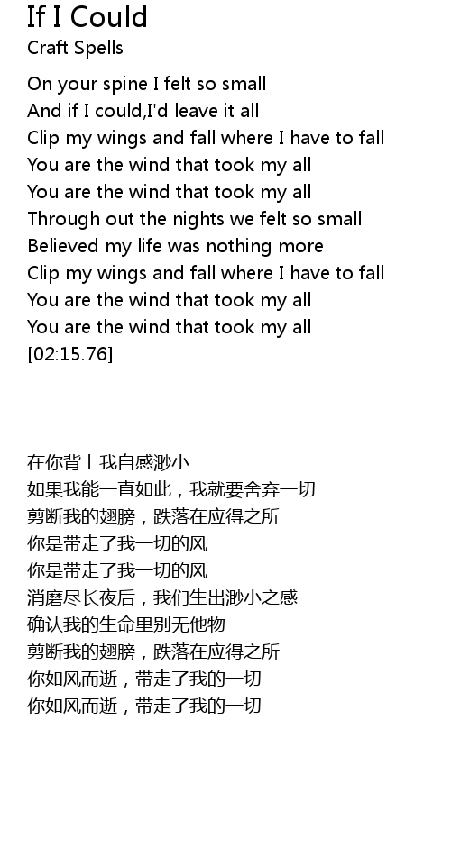| [02:10.73] | You are the wind that took my all |