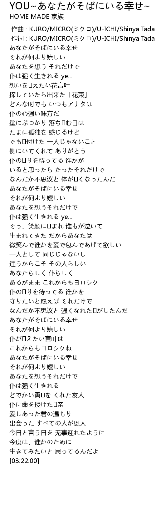 | [00:01.00] | zuò cí : KURO MICRO UICHI Shinya Tada |