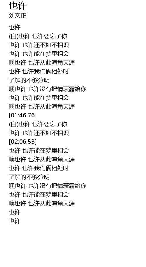 | [00:20.46] | (白)也许 也许要忘了你 |