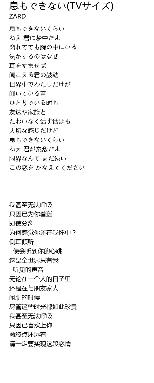 | 歌曲 | 息もできない(TVサイズ) |
