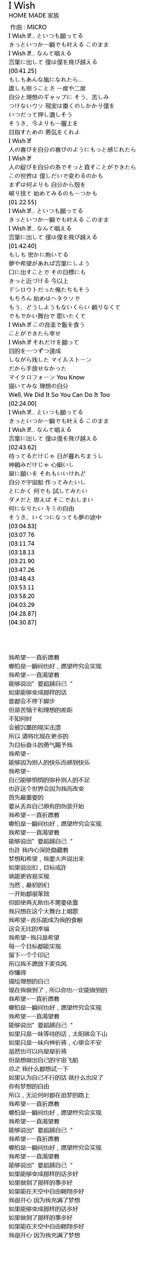 | [03:28.09][03:07.76] | I Wish If... yuàn |