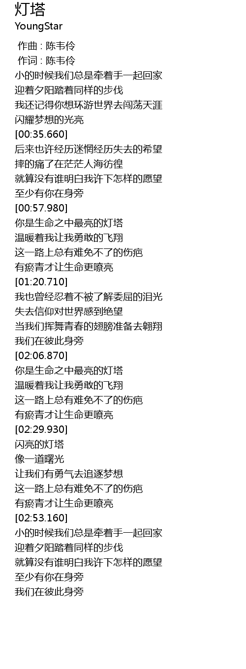 | [00:58.360] | 你是生命之中最亮的灯塔 |