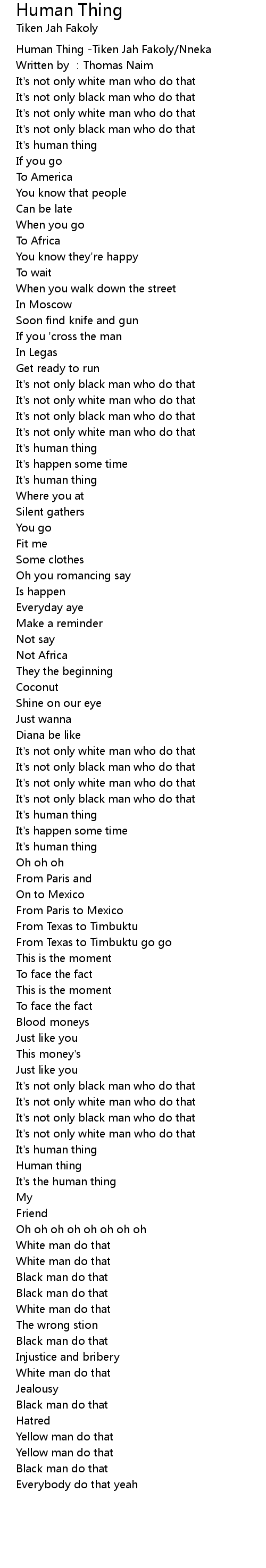 | [00:00.420] | Human Thing Tiken Jah Fakoly Nneka |