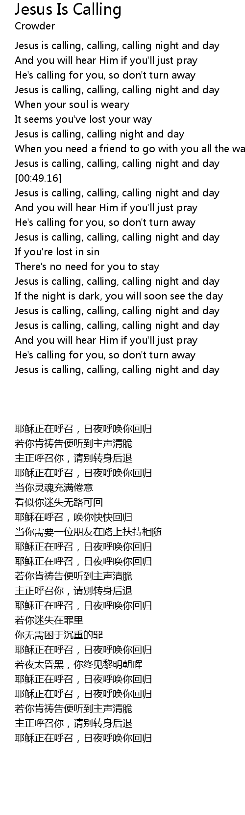 Jesus is calling, calling night and day |
