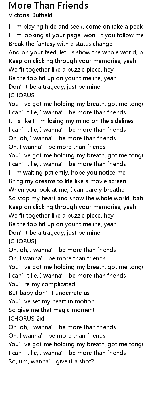 | Oh, oh, I wanna' be more than friends | |