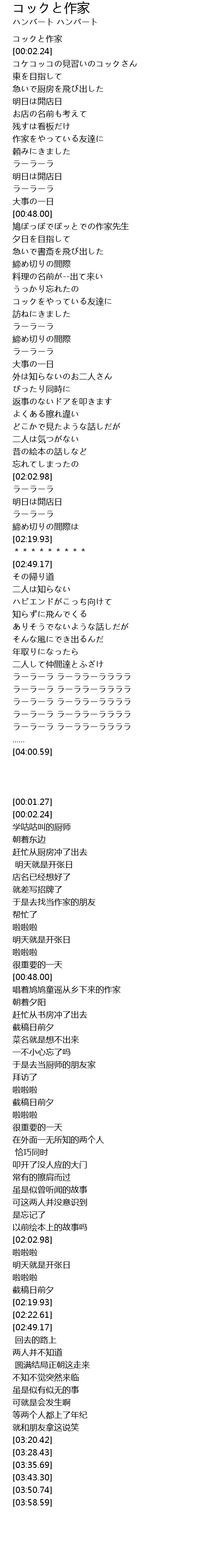 | [00:01.27] | コックと作家 |