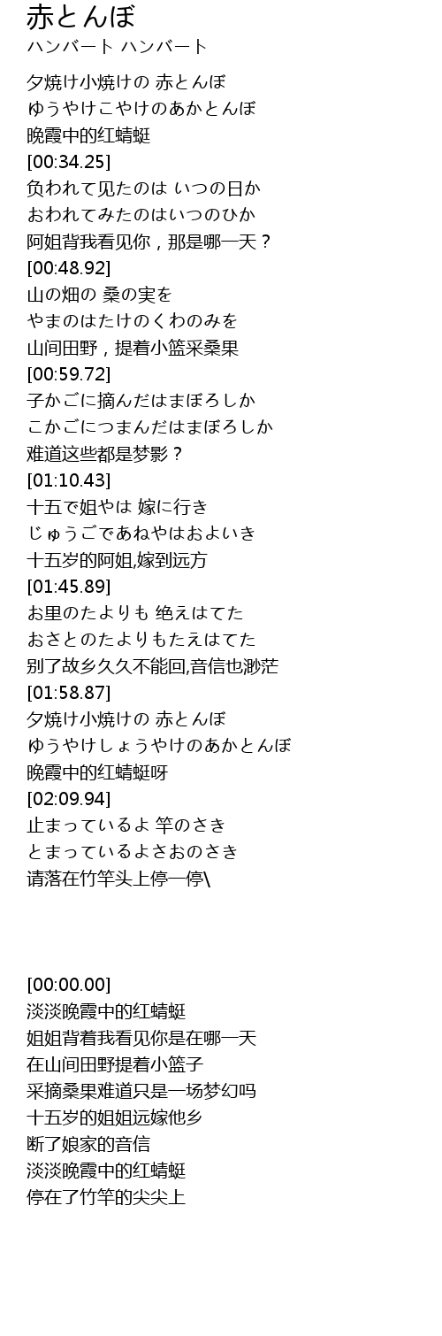 | [00:31.29] | ゆうやけこやけのあかとんぼ |