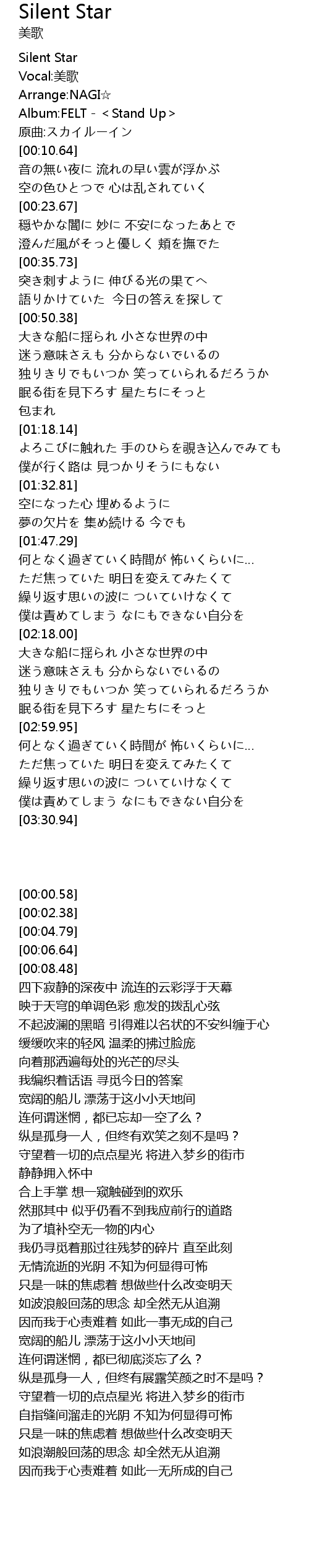 | [00:06.64] | Album:FELT - <Stand Up> |