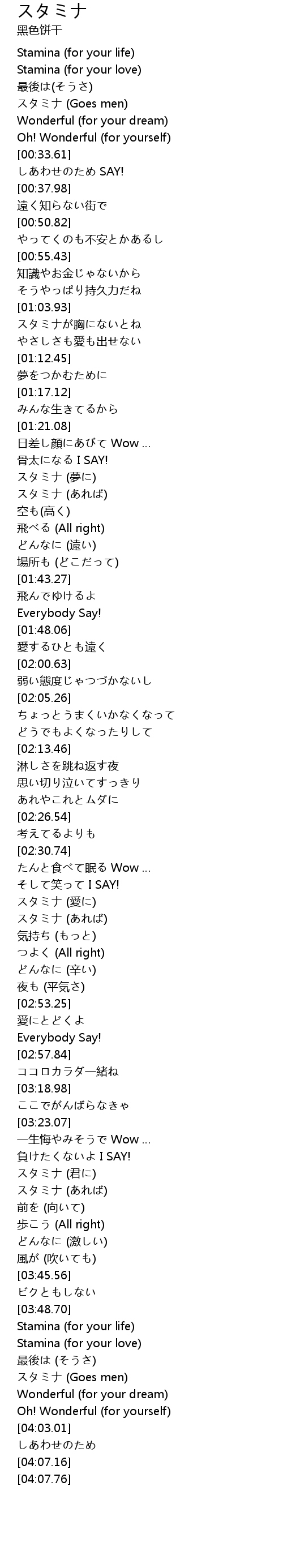 | [03:56.24] | スタミナ (Goes men) |