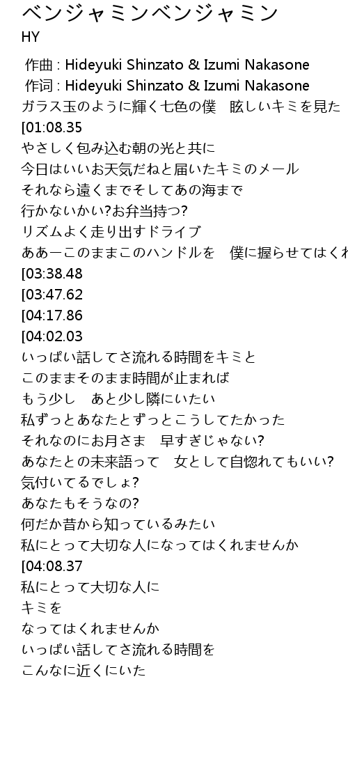 | 歌曲 | ベンジャミンベンジャミン |