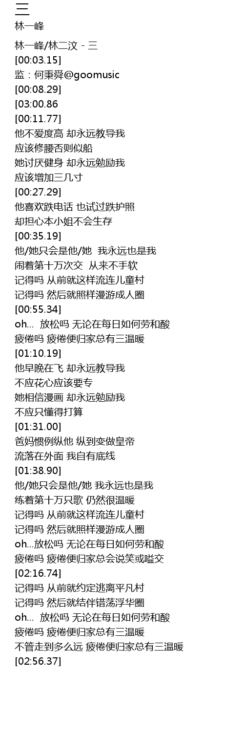| [00:00.17] | 林一峰/林二汶 - 三 |