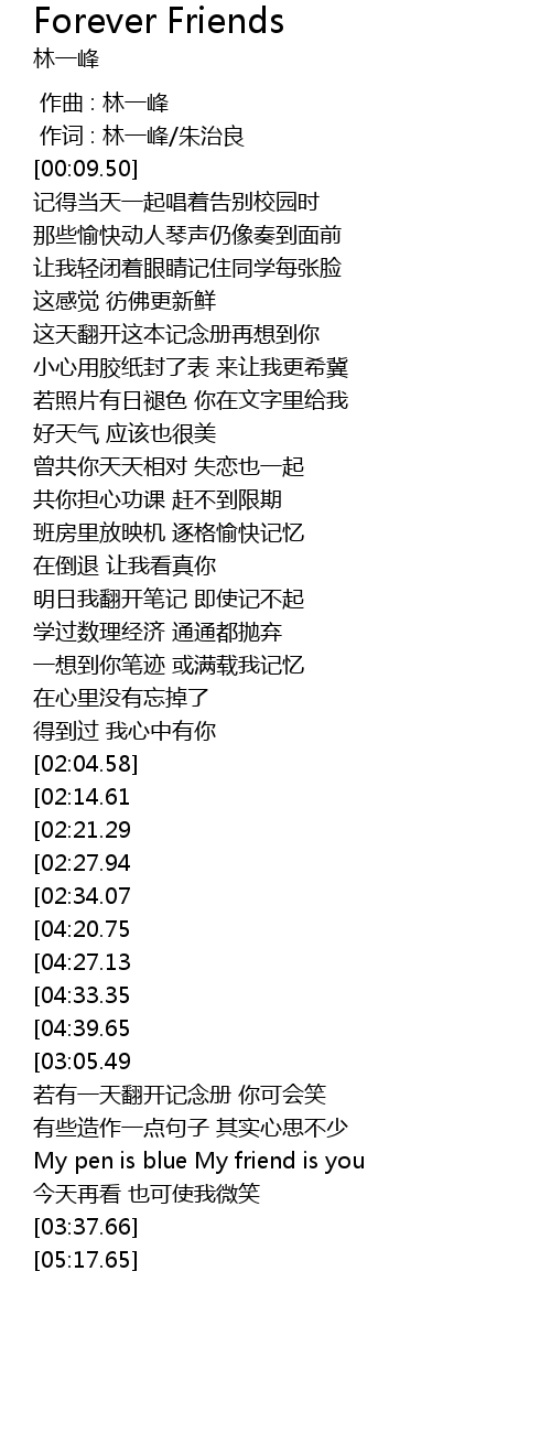 | [05:04.50][04:39.65][02:59.10] | zai xin li mei you wang diao le |