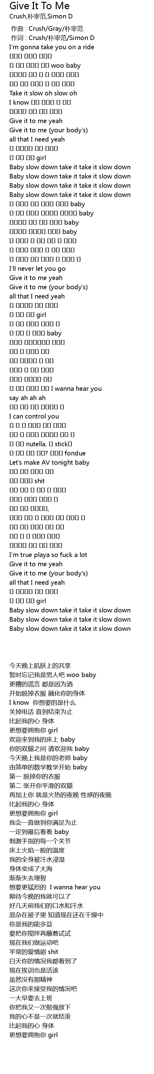 | [00:01.00] | 作词 : Crush/朴宰范/Simon D |