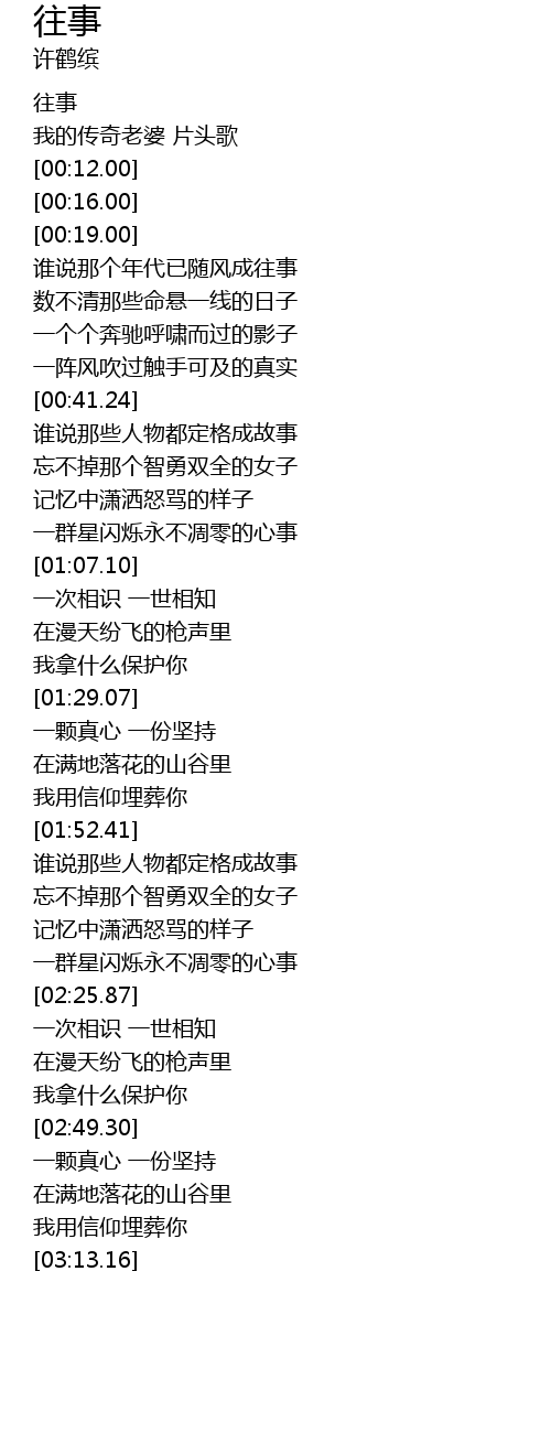 | [00:02.00] | 往事 |