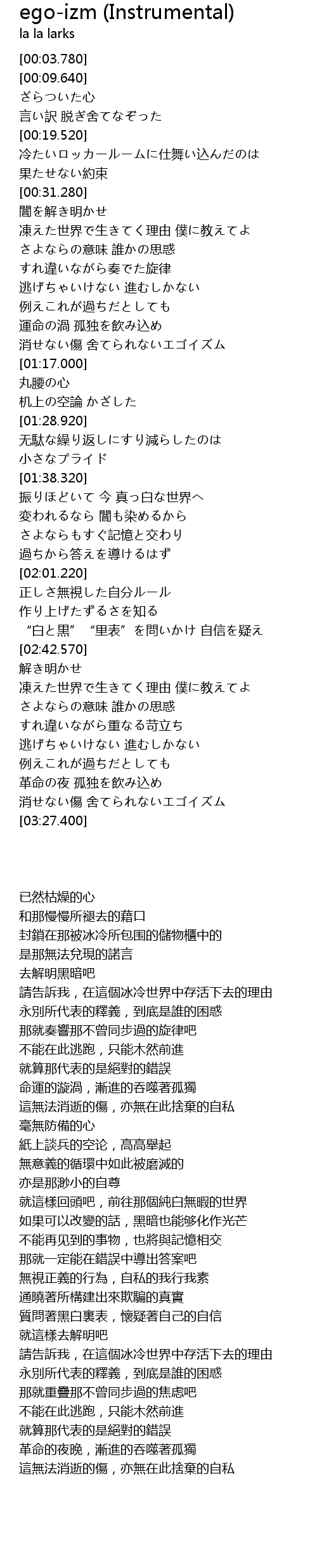 | [03:18.920] | 消せない傷 舍てられないエゴイズム |