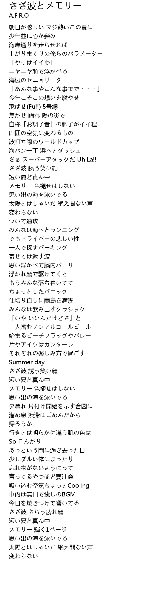 | 歌曲 | さざ波とメモリー |