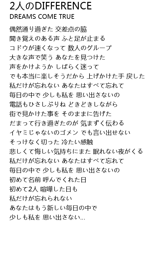 | 歌曲 | 2人のDIFFERENCE |