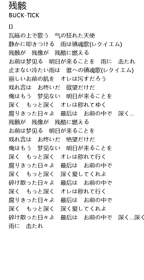 | 碎け散った日々よ 最后は お前の中で 深く…深く | |