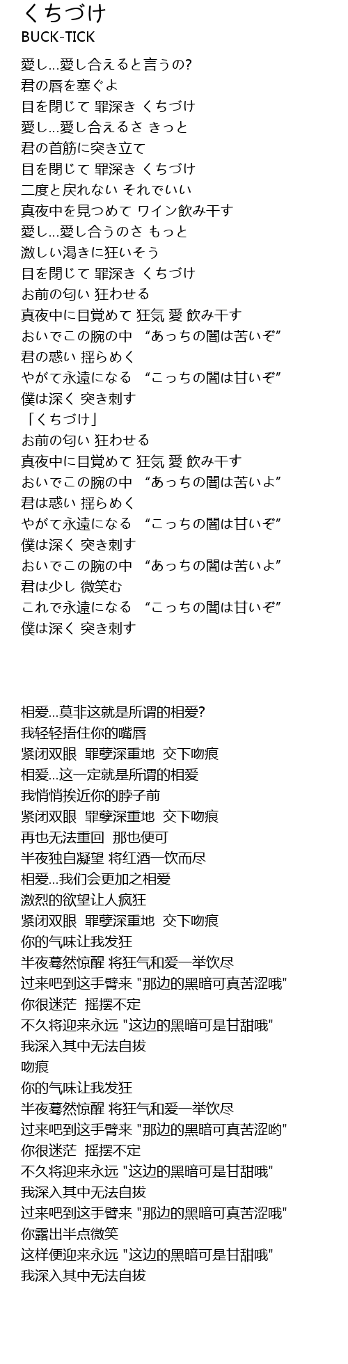 | [00:44.110] | 紧闭双眼 罪孽深重地 交下吻痕 |