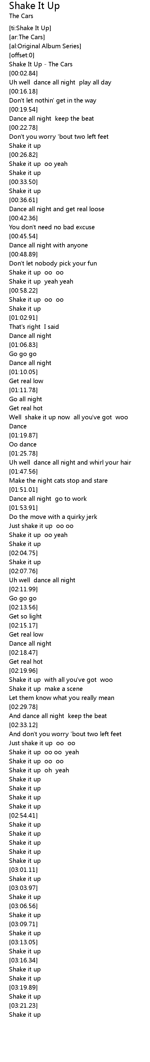 Shake It Up - The Cars |