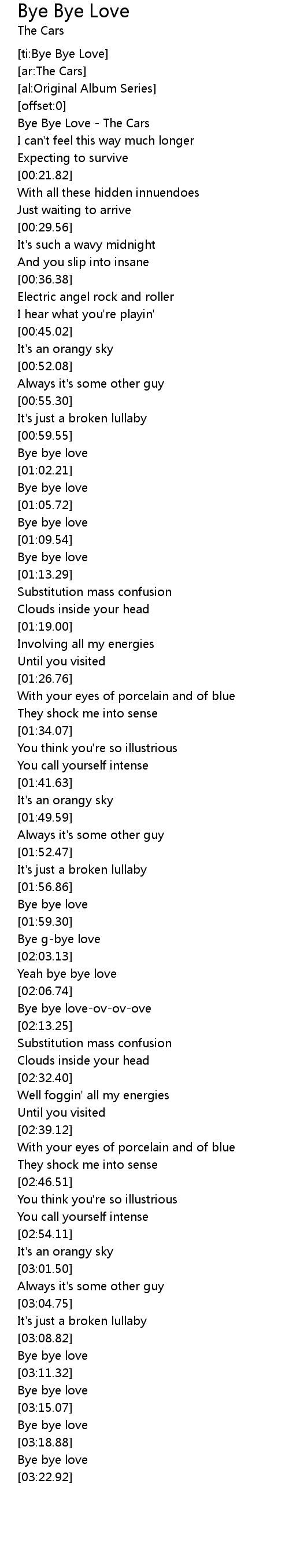 [00:00.61] Bye Bye Love - The Cars
