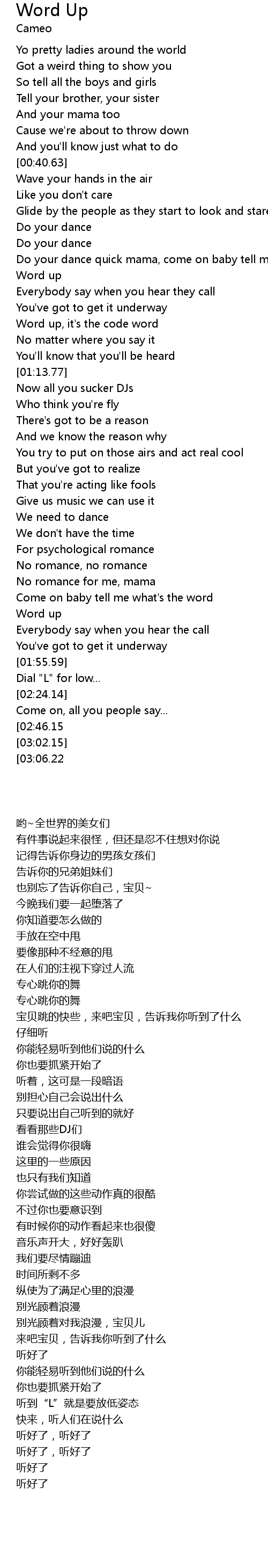 Word Up 歌词