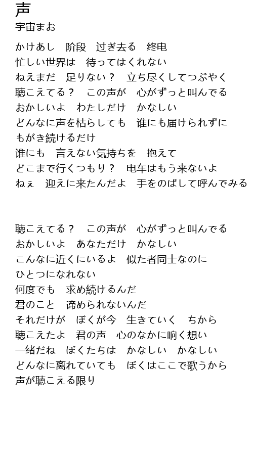 | 聴こえてる? この声が 心がずっと叫んでる | |