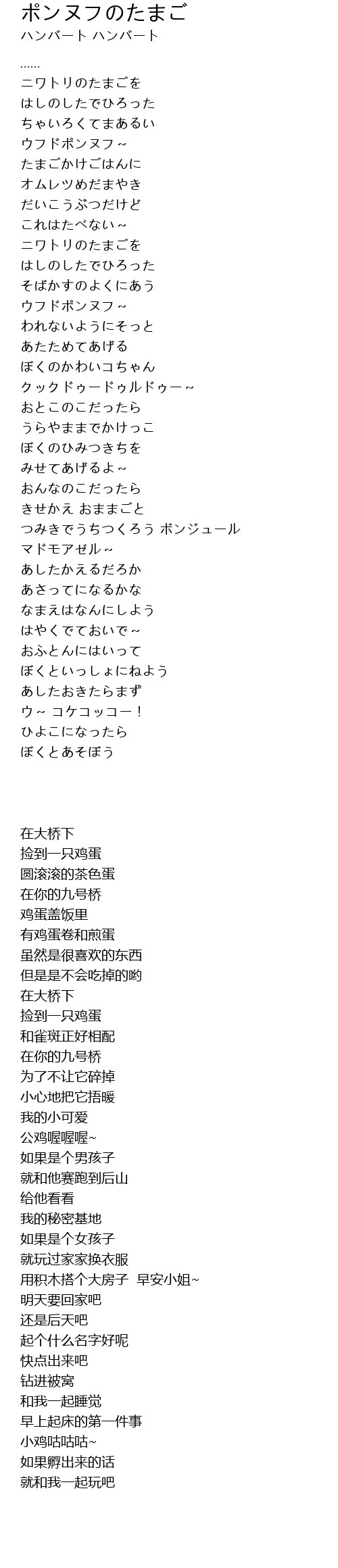 | 歌曲 | ポンヌフのたまご |