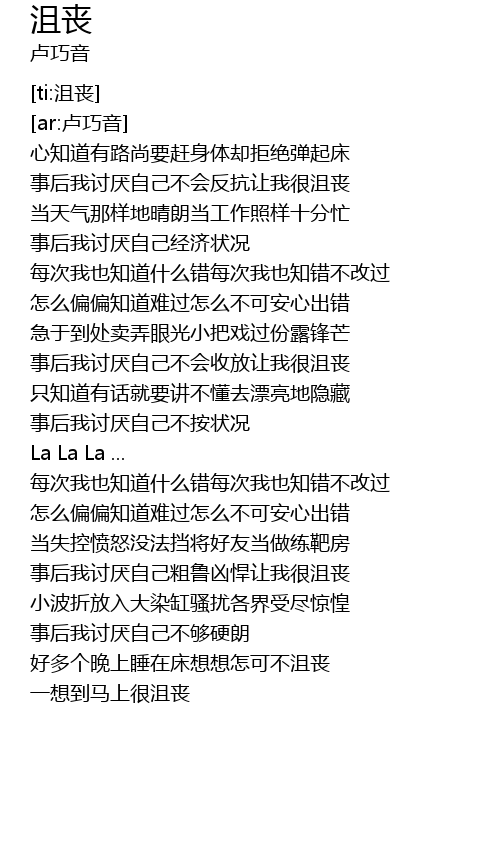 | [01:51.585] | mei ci wo ye zhi dao shen me cuo mei ci wo ye zhi cuo bu gai guo |