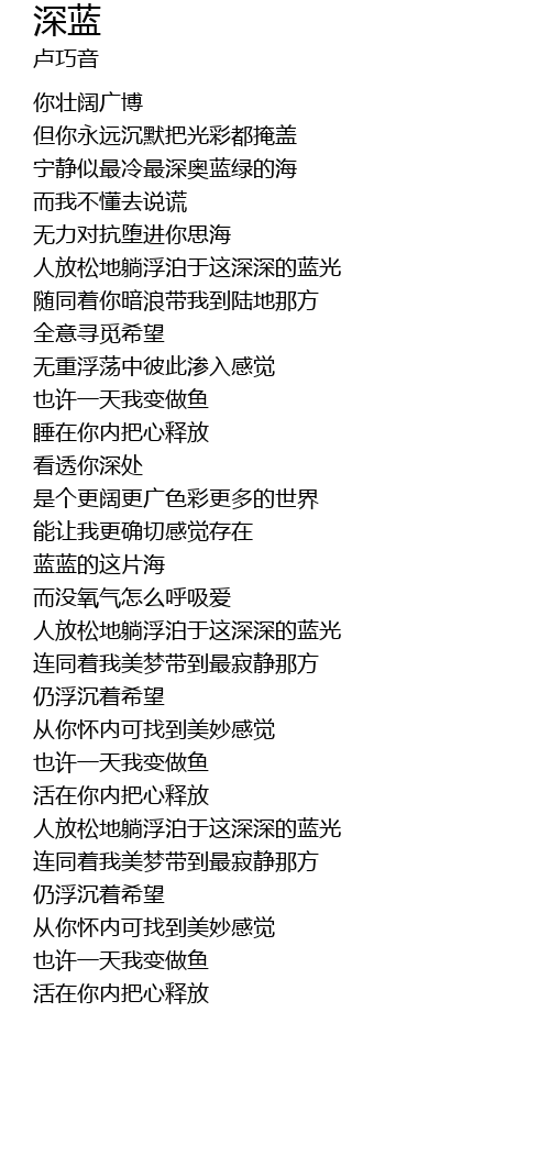 | [02:51.635] | 人放松地躺浮泊于这深深的蓝光 |