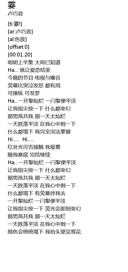 | [01:19.70] | Ha...一开掣灿烂 一闩掣便平淡 |
