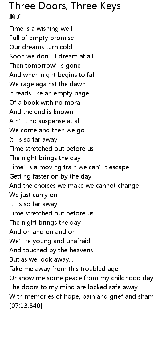 | [02:40.820] | Time' s a moving train we can' t escape |