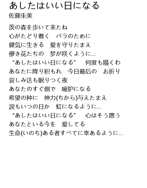 | 歌曲 | あしたはいい日になる |