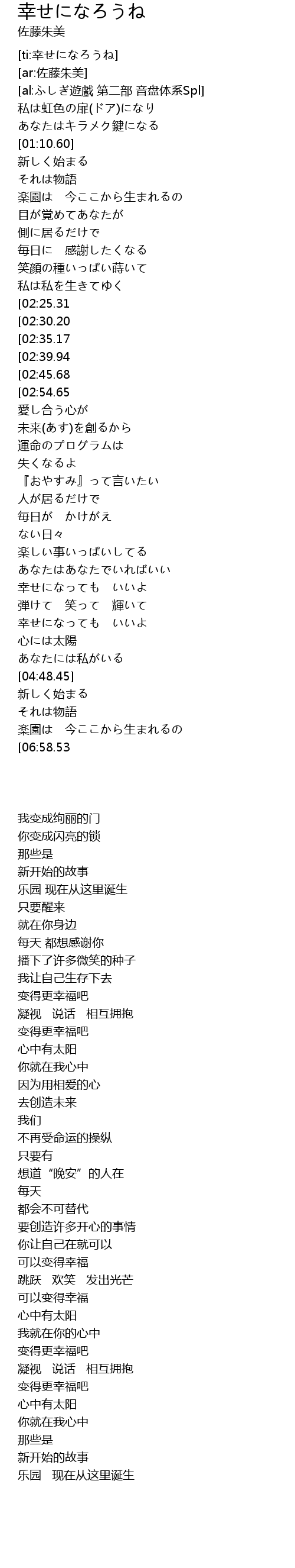 | [06:03.02][02:25.31] | 幸せになろうね もっと |