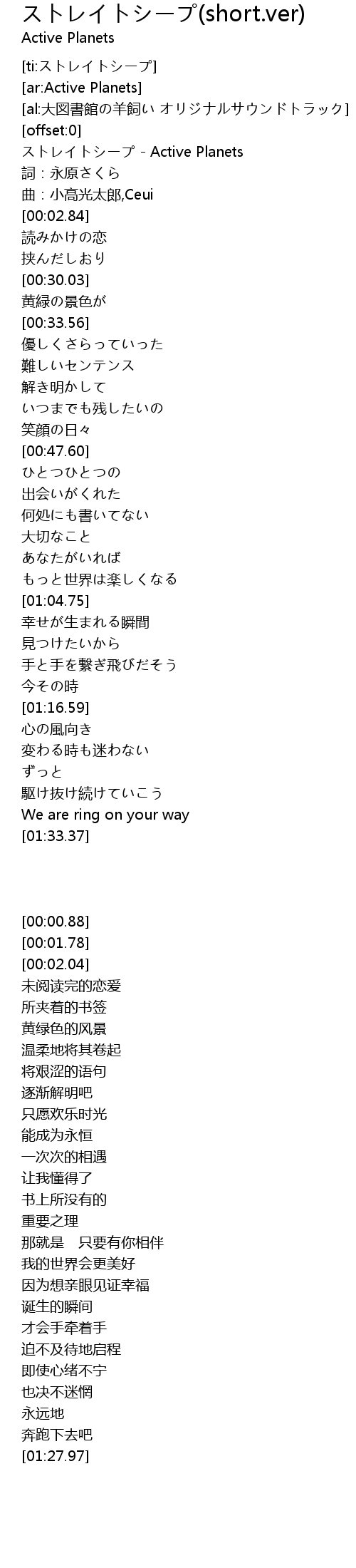 | [00:00.88] | ストレイトシープ - Active Planets |