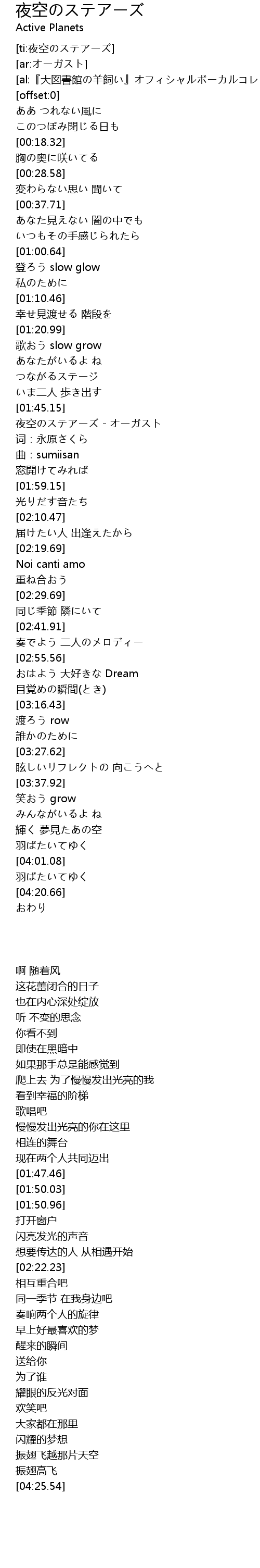 | [01:47.46] | 夜空のステアーズ - オーガスト |