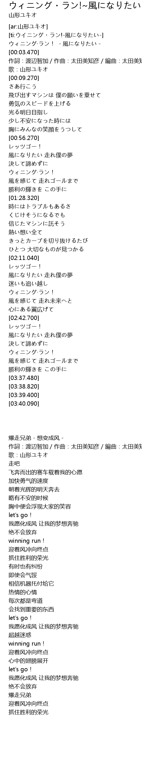 | [03:23.110] | 風を感じて 走れゴールまで |